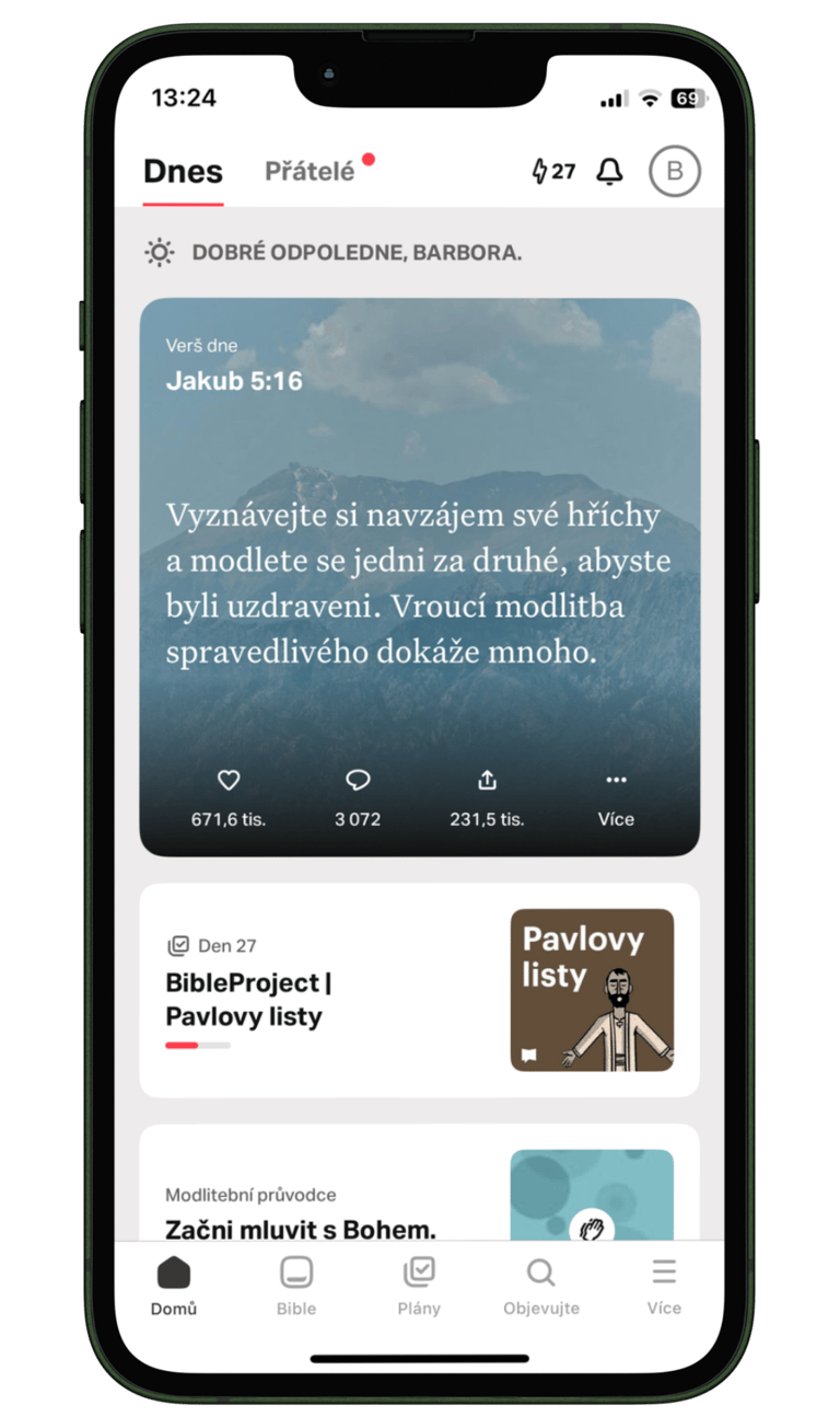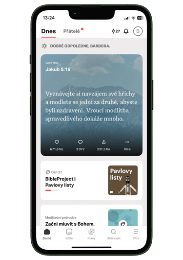 Každý den ti aplikace nabídne vybraný biblický verš. Můžeš si nastavit notifikaci a začít den Božím slovem třeba místo sociálních sítí.