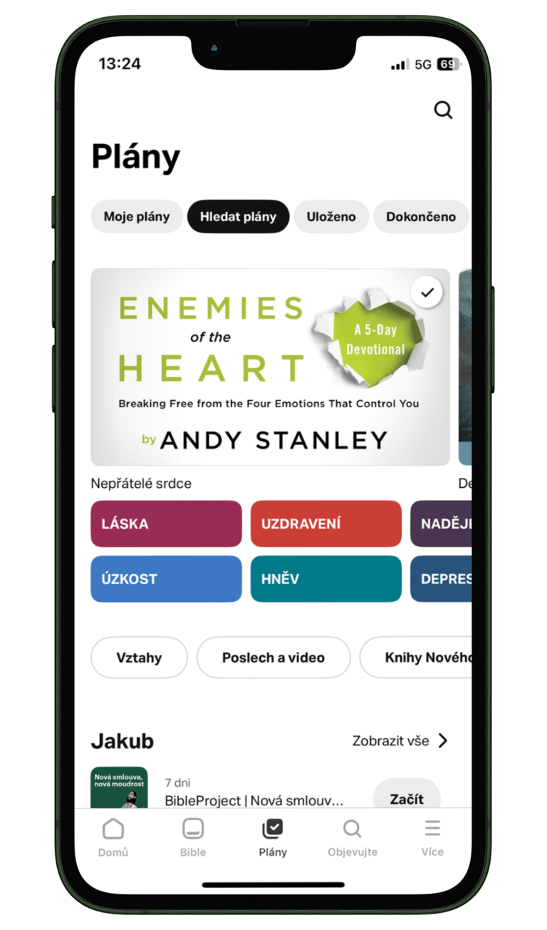 V aplikaci najdeš stovky tematických plánů – krátkých i dlouhých – zaměřených na různé oblasti života. Třeba manželství, rodičovství, víru uprostřed obav, vděčnost nebo naději. Plány ti pomůžou pravidelně se zastavit nad Písmem. U plánu si můžeš nastavit připomenutí v určitý denní čas, takže si čtení můžeš přizpůsobit svému harmonogramu. Díky plánu se mi v podařilo v minulém roce přečíst celou Bibli. Z téhle zkušenosti stále čerpám, protože mi pomohla vytvořit si návyk skutečně denně číst Boží slovo. Více o mém ročním plánu píši níže.